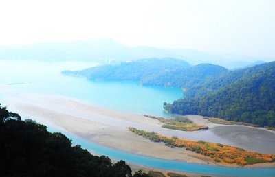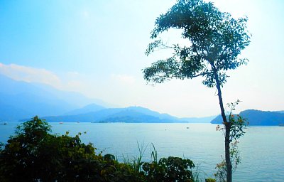 Jezero Sun Moon Lake ve dne a v podvečer
