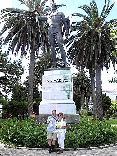 Odkaz císařovny Alžběty ctil i německý císař Vilém II., který zámeček po její smrti odkoupil od jejích dědiců. Na samém konci zahrady, na severní straně směrem ke Kerkýře, nechal umístit impozantní bronzovou sochu Achillea vítězného. Achilles stojí na piedestalu v plné zbroji, v jedné ruce drží kopí a v druhé štít s hlavou Gorgony.