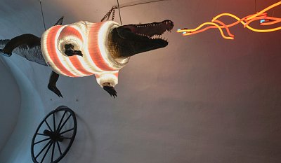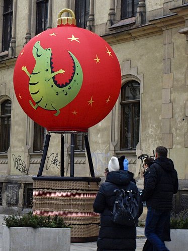 Brněnský "drak" neboli "krokouš" je v tomto předvánočním čase oblečen do slušivého pruhovaného svetříku a z tlamy mu šlehají světelné plameny :-))