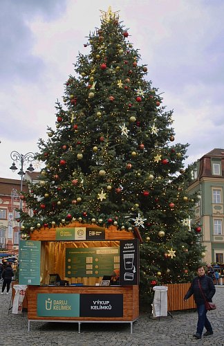 A to jsme již na náměstí Svobody. Před domem pánů z Lipé je nainstalována vyhlídka, odkud přehlédneme celé náměstí jak na dlani. I s dalším krásně nazdobeným stromem, brněnským orlojem a mnoha stánky
