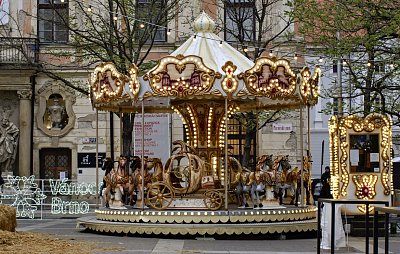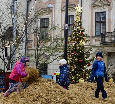 Pro pobavení nejmladší generace slouží na Moravském náměstí dobový kolotoč a slámová hora :-))