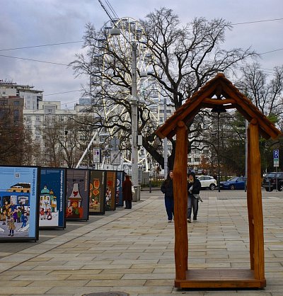 Na Moravském náměstí nás přivítal nejen markrabě Jošt na svém koni, ale i ohromný nafukovací krokodýl, obdivovaný zejména dětmi (úvodní fotografie). Krokodýlí motivy byly patrné na celých trzích. Ať už jako pexesa, omalovánky, textilní figurky, plecháčky, textilní tašky, magnetky ..... Doprovodné slovo a vánoční koledy jsme poslouchali díky živému vysílání Rádia Krokodýl. Na panelech Vánočního putování (vpravo) jsme se dozvěděli mnoho zajímavého o Vánocích u nás i v zahraničí, a kdo měl nějaké tajné přání, mohl zazvonit na tajemný zvonec ve zvoničce :-)